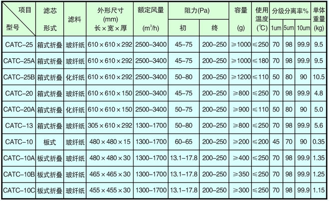 针对国内各汽车生产厂涂装线不同需要,我厂开发并生产了 CATC-25 型, CATC-13 型耐高温高效空气过滤器,他是采用玻璃超细纤维纸做滤材,铝箔作分隔板,镀锌钢板框架,与不含硅铜的耐高温密封胶装配而成。开发的 CAGC-10A 系列产品,具有体积轻、便安装、阻力小、过滤精度高、容尘量大、使用周期长等优点,是替代旧式玻毡式过滤芯的更新换代产品。